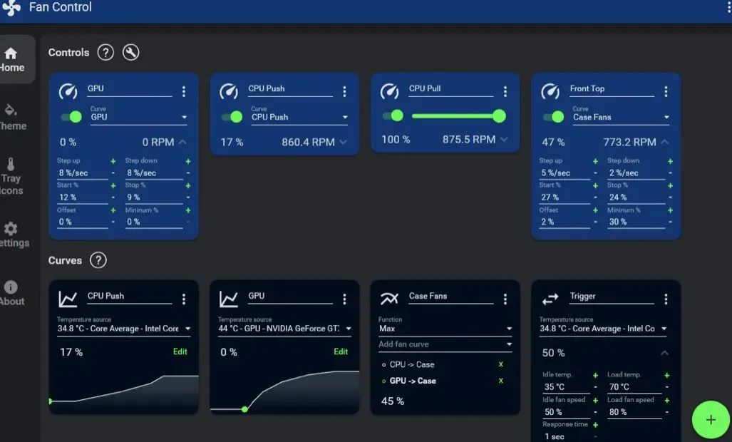 FanControl的强大,在于它的'可编程'思维。它不是一个简单的滑块调节器,而是一个图形化的'风扇策略编辑器'。你可以创建多个'风扇曲线',将风扇转速与特定温度传感器的读数绑定。