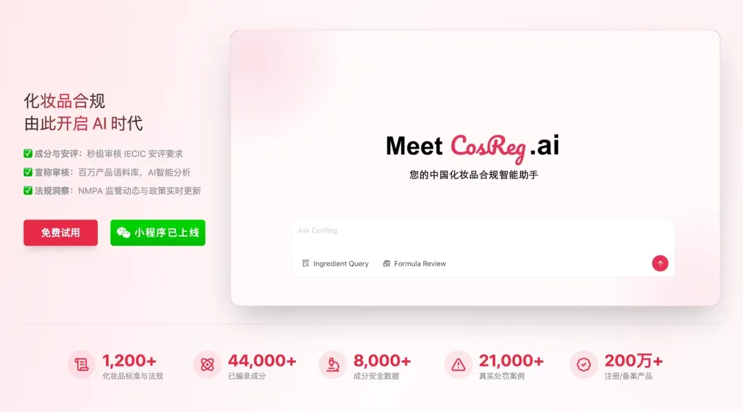 在这个过程中,一个非常明显的趋势是:先用垂直工具解决“对不对”的问题,再用通用AI解决“快不快”的问题。这也是为什么,越来越多化妆品团队会优先引入像CosReg这样的工具。因为在这个行业里,最核心的从来不是“能不能生成内容”,而是“这些内容能不能用”。