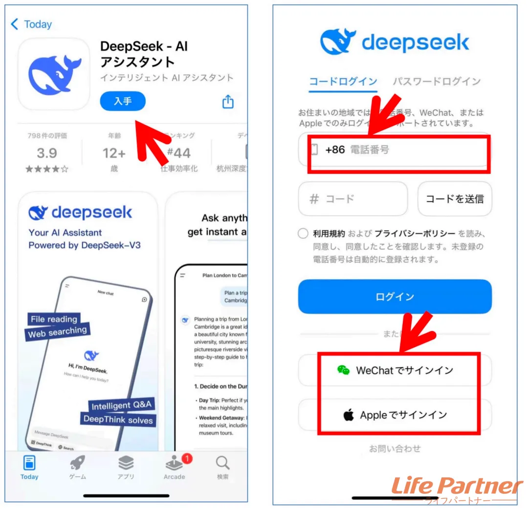 APP検索で「DeepSeek」で検索し、ダウンロード