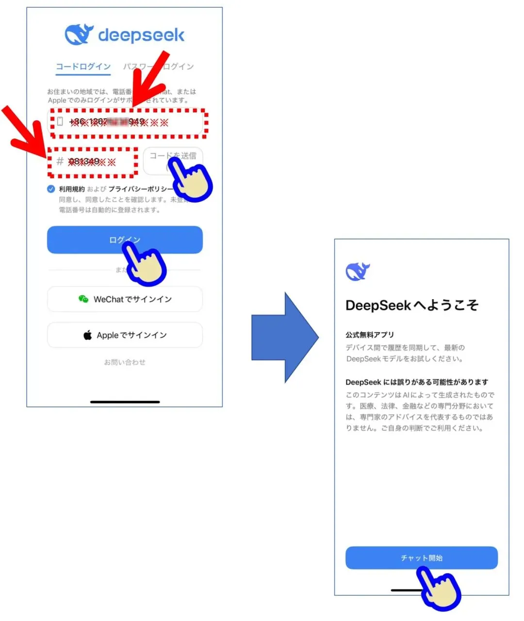 APPを立ち上げて携帯電話番号、またはWechat、Apple IDでサインインします