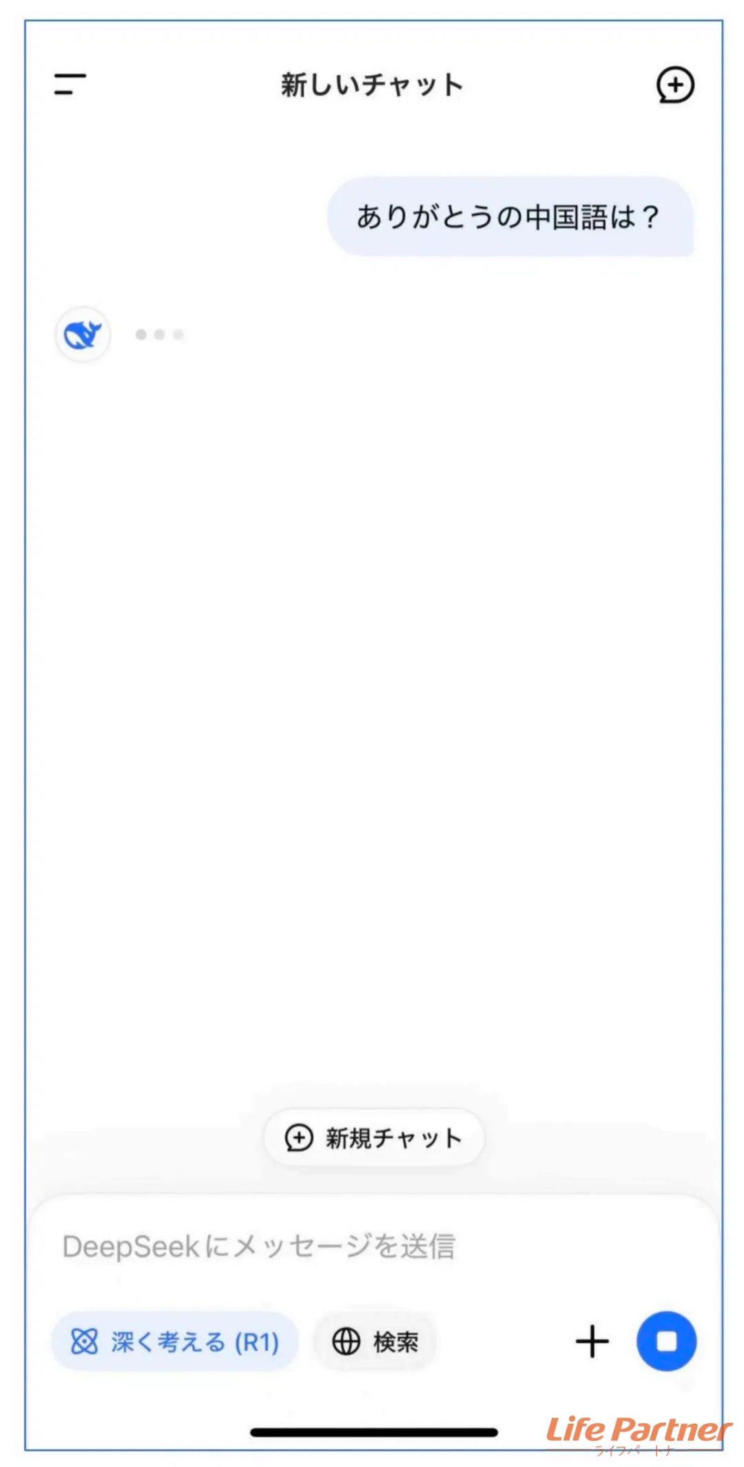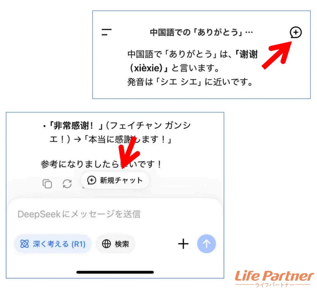 別な話題にしたい場合は、画面右上の「+」ボタンか、画面下の入力欄上部にある「+新規チャット」をタップすればOKです