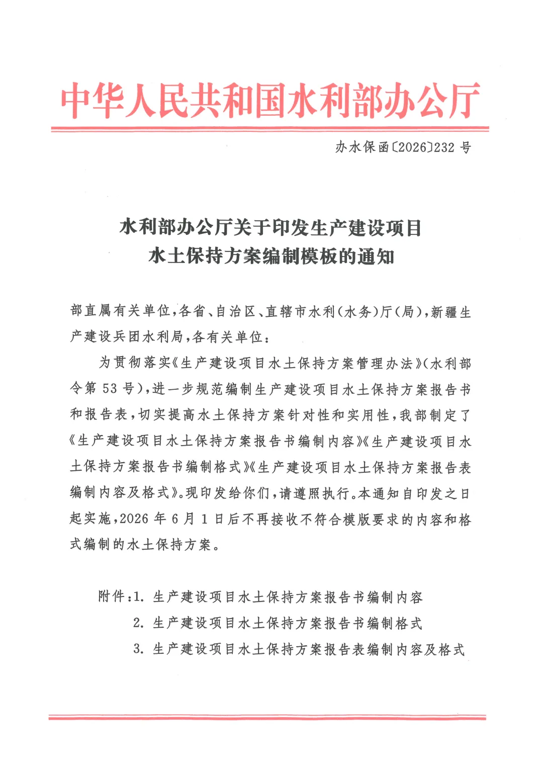 注意水土保持方案有新编制模板了,自印发之日起实施!