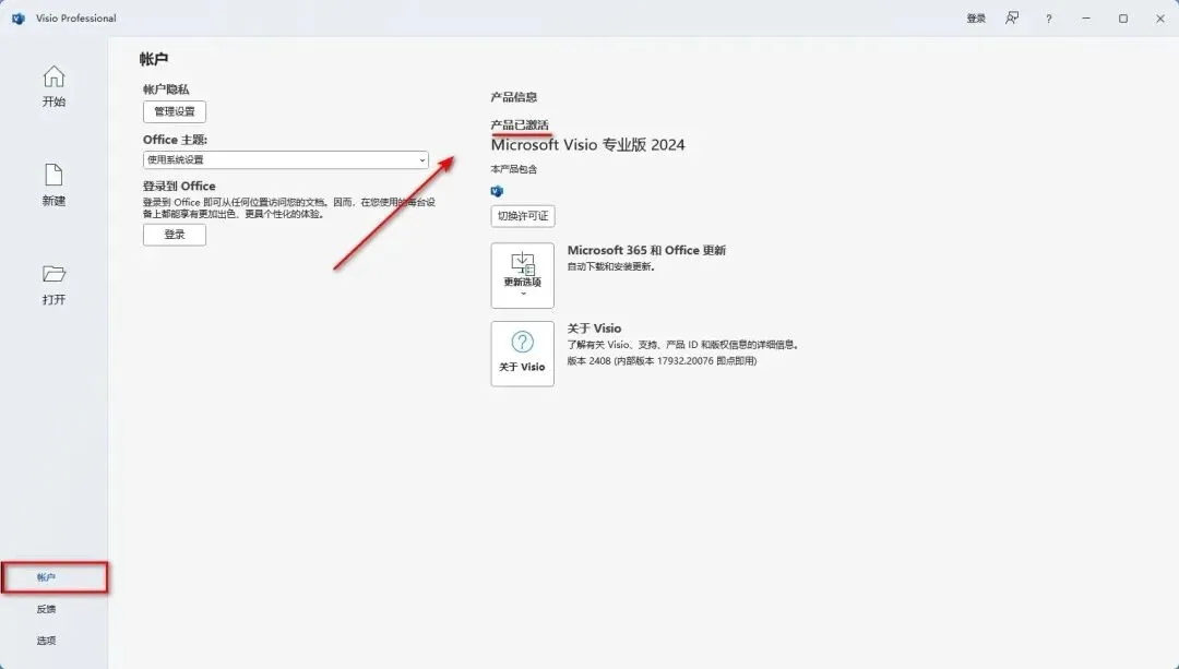 12.点击账户,在产品信息中可以查看是否激活成功,激活成功如下图,显示为产品已激活,安装结束