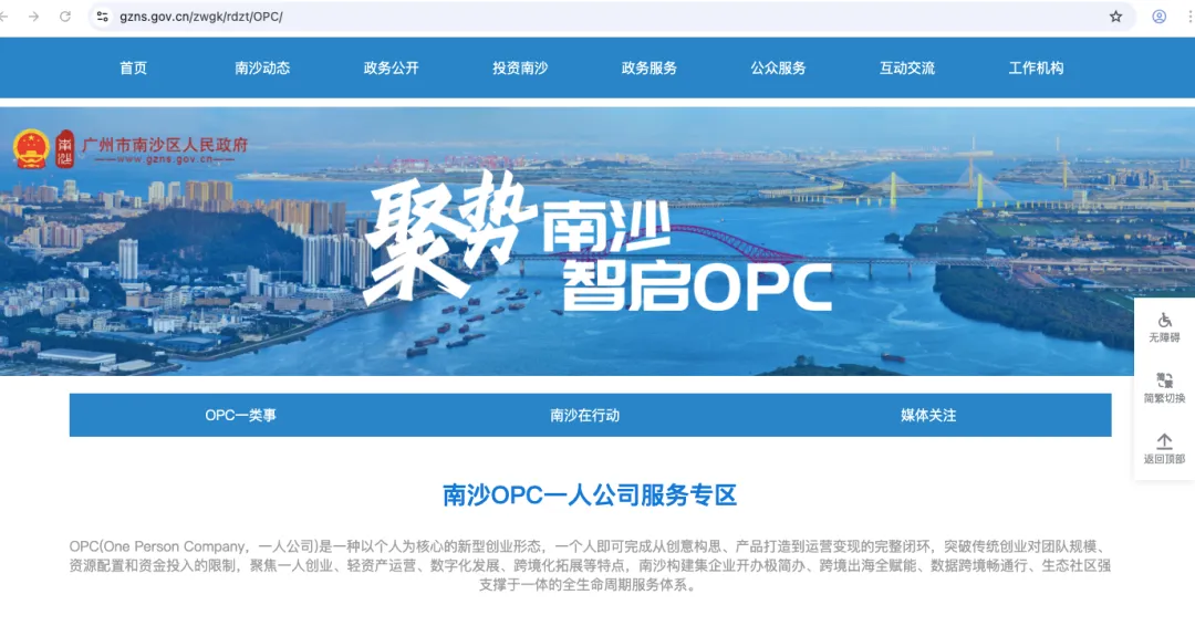 开办极简服务。南沙推出OPC一人公司“一网通办、一窗通取”集成办理模式,最快 0.5 天办结。
