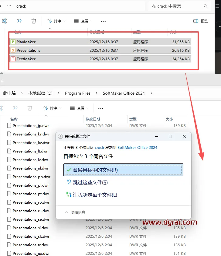 3、安装完成后先不要打开。要将破解补丁复制替换到软件安装目录下(安装目录默认为:C:\Program Files\SoftMaker Office 2024)