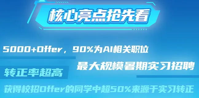 字节整体扩招20%,AI相关岗位占比近半,同时面向27届留学生开放大量可转正实习,转正率超50%。百度计划发放超5000份offer,AI岗位占比超90%。腾讯、美团、Shopee等企业同步全球招聘,算法、研发、产品、数据等大量岗位开放。