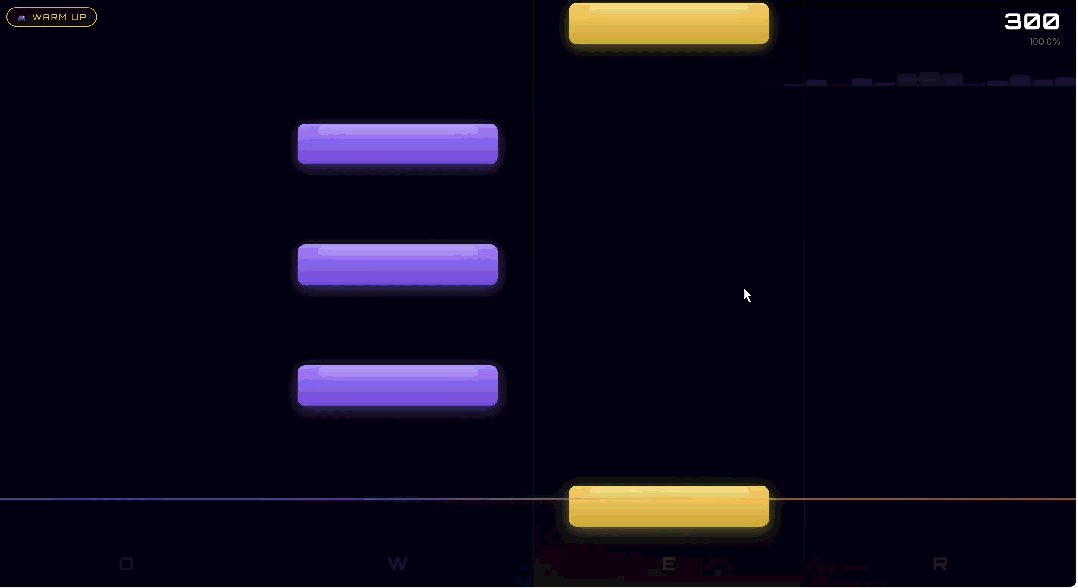 用vibe coding搓了一个钢琴块小游戏:方块从屏幕上方往下掉,你按Q/W/E/R四个键去接,每条轨道对应一个键。