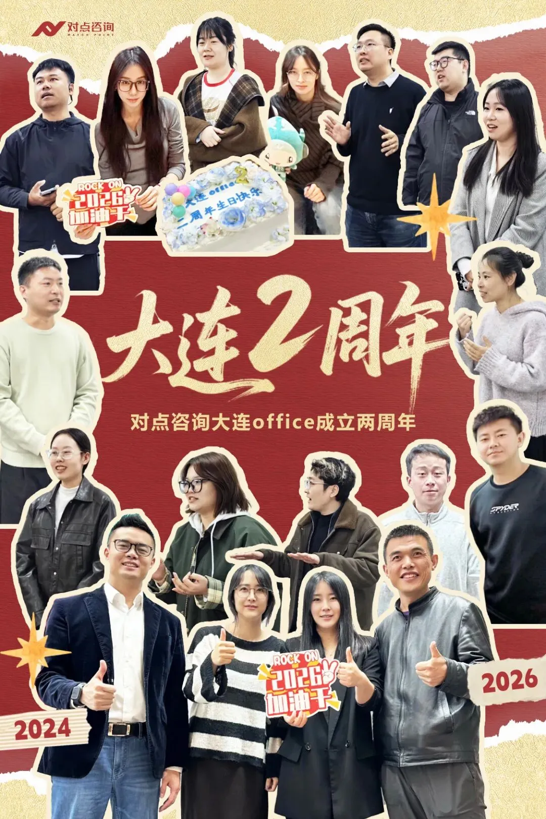 对点咨询大连office成立两周年:从初心到共识,每一步皆因热爱四月,对点咨询大连office迎来两周岁生日。辽东半岛,渤海之滨,大连office的成立,是公司深耕东北战略布局的里程碑,也是业务版图拓展的关键一步。两年间,这里的伙伴们以真诚、专业与主人翁精神,将大连office逐步打造为公司在东北地区的重要支点。今日,对点咨询联合创始人Tim,高科技行业总监Emily、Michael,大健康行业高级经理Sherry和大连同事们欢聚一堂,共同庆祝大连office成立两周年。01.发展历程:从方寸之地到开阔新篇庆典伊始,大健康行业高级经理Sherry回顾了团队的成长轨迹。2024年4月1日,她正式入职,大连office实质性启动。同年5月,团队迁入约60平米的办公空间,彼时仅有5人。随着一张张照片的播放,Sherry带大家重温了多个温暖瞬间。她特别提到,如今办公室面积已拓展至120平米,团队人数有15人,期待未来继续升级。“大连office的每一步成长,离不开大连每一位伙伴的全情投入。”Sherry说道,“没有大家共同创建与维护的团队氛围,就没有大连office的持续壮大。”她将团队文化归结为正直的品格、饱满的热情与高度的投入,“大家始终奔着同一个目标:把事情做好,让办公室不断壮大,使对点在大连拥有一席之地。”展望未来,她希望大连office能在大连猎头行业中树立专业口碑,成为最具吸引力、最具温度感、最专业的团队,更成为每一位伙伴实现职业价值的平台。随后,伙伴们依次分享了自己的加入感受与未来期许。大家纷纷表示,愿为将大连office打造成东北地区人力资源服务行业的领军者而共同努力。02.嘉宾心声:真诚、担当与共同的信念高科技行业总监Emily于去年8月首次到访大连office,她用“真诚”与“生动”两个词概括对大连office的印象。她表示,团队成员之间沟通非常开放,氛围自由而舒适。从最初的五位同事到如今的十五人团队,大家始终坚守并持续吸引志同道合的新伙伴。“好的能量场,自然能吸引同样优秀、同样认同这种文化的人。”她相信,大连office短期内必将呈现全新面貌。高科技行业总监Michael则用“活泼、团结、向上”形容大连团队。他从北京来到大连后,深刻感受到团队活跃的凝聚力,尤其赞赏伙伴们展现出的“主人翁精神”,把办公室当成共同的家。Michael回顾了团队最初提出的“振兴东北经济”的愿景,认为大家正以实际行动向这一目标迈进。他期待未来有更多大连伙伴成为百万顾问,共同踏上公司海外游。联合创始人Tim首先感谢了Sherry的加入与坚持。他坦言,异地开设办公室难度很大,此前曾婉拒多个申请,而Sherry的加入是一个关键而正确的决定。他也感谢每一位早期伙伴的信任,“大家加入公司,是一张张信任票,我们唯一能回报的方式,就是帮助每个人实现目标、获得成长。”Tim还分享了他对理想组织的理解,“好的公司像一所学校,上课时认真学习,下课后建立深厚情谊、结交终身好友。”他回忆起大学时期关于“人的本质是否追求利益”的思辨,引申到公司的利润共享计划,“如果把业绩成果分享给团队伙伴,让更多人过得更好,便是最有价值的事。”他透露,今年初公司已分配500万元,未来目标是1000万元、5000万元,“大连office氛围积极、伙伴优秀,我们要朝着这个目标共同前进。”03.以此刻为起点,共赴更高处庆典特别设置了“三年后的愿景”环节。每位伙伴在便利贴上写下对三年后自己或团队的畅想,张贴成一面“愿景墙”——既是对未来的期许,也是一份承诺。尾声,Sherry、Tim与全体伙伴共同切下两周年蛋糕,合影留念。镜头定格的每一张笑脸、每一个并肩的姿态,既为两年历程写下生动注脚,也为下一个三年开启新的序章。大连office,两周年快乐。三年之约,我们共同奔赴。如果你认同真诚、专业、富有主人翁精神的工作文化,并希望在这座美丽的海滨城市投身于兼具成长性与温度感的人力资源事业,对点咨询大连office欢迎你的加入。好的能量场,汇聚更多同频的人。