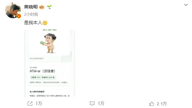 直到SBTI人格测试的出现,这一切被悄然改变——从普通网友到黄晓明、苏醒、蓝盈莹等明星,都在晒出自己的测试结果,用“吗喽”“ATM-er”“贫穷者”的自嘲标签,掀起一场全民狂欢。