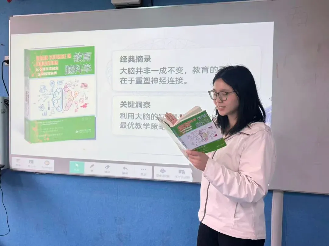 当数学思维邂逅脑科学与AI,会碰撞出怎样的教育火花?数学教研组的陈祉言、袁佳瑞两位老师结合《教育脑科学》与《AI时代的学科项目化学习》两部著作,立足日常教学实践,分享了深刻的研读思考与教学感悟。在两位老师的领读分享引领下,组内老师聚焦两本书籍的核心理念开展头脑风暴,凝聚智慧共识:数学教学可依据学生工作记忆容量,拆分复杂教学步骤,融入多感官训练以提升学生核心素养;同时可借助AI技术,设计真实的项目化任务,依托智能工具实现个性化教学反馈。