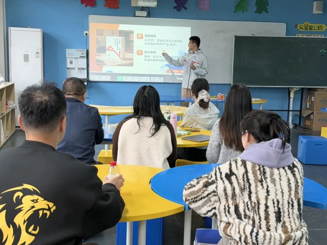 为探索AI时代英语教学的创新路径,英语教研组以课例为核心,教师们化身师生,沉浸式还原课堂中运用AI工具的真实场景:借助《GenAI时代如何做教师》中的实操方法,学习用AI设计分层作业、生成趣味语料;结合《AI时代的学科项目化学习》,呈现AI辅助英语PBL项目的完整流程。老师们在演绎中深化对AI赋能教学的理解,碰撞出丰富的教学新思路。