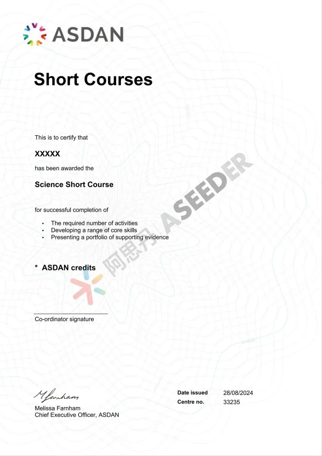 ASDAN SCIENCE SHORT COURSES CREDIT证书