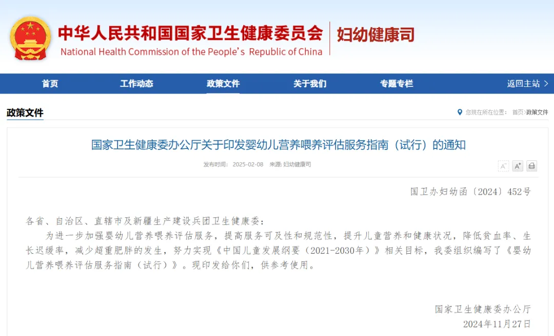 婴幼儿营养喂养评估服务指南(试行)