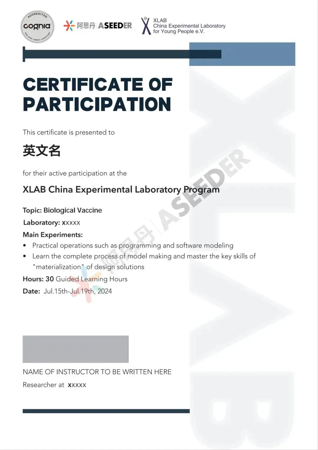 ● XLAB项目结业证书