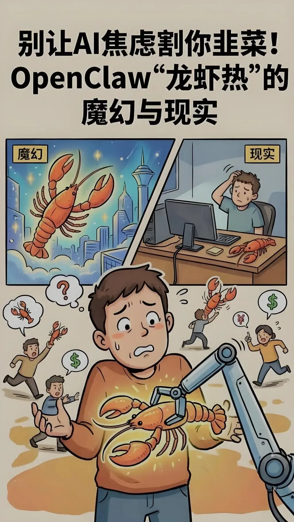 不要被AI焦虑驱动,但要被AI风口机会牵引昨天看了巫师财经的一个视频,关于AI的风口,讲的不错,不过我也有自己的一些想法,分享给大家: 巫师财经的核心论点在于拆解"AI风口论"背后的认知陷阱与经济本质。他尖锐指出,当下充斥网络的"错过AI就是废物"论调,本质是一种精心设计的PUA话术——通过制造焦虑来卖课、卖会员、卖直播,其真正危害在于遮蔽了真实的经济生产关系。 他认为,个人唯一的资本不是财富或认知,而是有限的青年劳动时间。当技术和资本结合时,关键不在于技术本身积极或消极,而在于谁掌握算力、谁拥有平台、谁控制生产资料。AI确实改变了利润格局,但创造的价值最终流向了掌握资源的既得利益者,而非普通劳动者。 在应用层面,他提出"业务在先,工具在后"的铁律。他批判了那种"为了用AI而用AI"的虚假繁荣——许多人买了课程、学了部署、搭建复杂工作流,最后发现生活中真正的高频需求,用免费国产通用AI就能解决。对99.9%的普通人而言,AI只是"聪明一点的助手",如同洗衣机解放双手一样解放部分脑力,绝非"翻身改命"级的机会。 他还提出"AI隐身论":真正伟大的技术最终都会像水电、互联网一样融入生活毛细血管,成为"空气般的存在"。用户无需专门学习,只需正常使用APP,AI功能自然内嵌其中。那些将AI架在神坛上的人,恰恰不希望它变成自来水,因为神秘性才能维持高价卖课的空间。 关于"AI替代论",他指出理论覆盖率与实际覆盖率之间存在巨大鸿沟。AI落地需要数据对接、系统集成、合规审查、组织变革等多重摩擦,且责任归属问题在医疗、法律等领域尚未解决。他最终强调,普通人真正该做的不是追逐风口,而是在自己深耕的领域(家族积累、个人经验壁垒)中用AI提效,"事以密成",而非被焦虑驱使东一榔头西一棒槌。 ……………………………我是分界线……………………………… 蚊子观点:AI确实是生产力杠杆,机会属于敏锐的实践者 我完全认同巫师对"焦虑贩卖"的批判,但必须指出,他对AI价值的判断略显悲观。在我看来,AI不仅是"聪明一点的助手",更是生产力的超级杠杆;而所谓的"风口",确实存在,只是不属于"买课学习"的人,属于"拿来就用、快速试错"的行动派。 一、AI作为工具,确实在重构工作效率的基准线 他将AI比作洗衣机,我认为这个比喻低估了AI的颠覆性。洗衣机只能替代单一动作,而AI(以GPT-5、龙虾、Claude、Midjourney、Runway等为例)正在同时替代认知、创意与执行三个层面。 在文案与内容生产领域,AI的提效是数量级的。以我观察到的自媒体行业为例,过去一篇深度图文需要3天资料搜集、1天写作、1天修改;现在用AI辅助(Perplexity查资料、Claude起草、GPT-4润色),全流程压缩到4-6小时,且质量不降反升——因为AI能快速提供跨领域知识框架,弥补个人认知盲区。这不是"洗衣机式"的省力,而是"外接大脑式"的扩能。 在编程与开发领域,GitHub Copilot、Cursor等工具已让"单兵作战"成为可能。2024年Stack Overflow调研显示,使用AI辅助的开发者生产效率提升55%以上。这意味着独立开发者可以用以往1/3的时间完成MVP(最小可行产品),快速验证商业模式。巫师说"业务在先",但现实中往往是AI降低了业务的启动成本,让原本不具备完整技能栈的人(不会写后端的设计师、不会画画的程序员)能独立启动项目。 在机械与重复工作上,龙虾正在替代数据录入、表格整理、客服初筛等岗位。这不是"可能",而是正在发生的现实。我的朋友在某电商公司做运营,过去每天花4小时整理竞品价格表,现在用龙虾20分钟出报告,省下的时间用于策略思考,半年内薪资翻倍。这种效率跃迁,不是"洗衣机"能类比的。 二、AI浪潮确实创造了新职业与新收入通道,关键在"发现"与"执行" 巫师认为"每条赛道都挤满了人",但这是对存量市场的描述。AI创造的是增量市场与新的需求场景,这些领域尚未形成巨头垄断,正是普通人可以切入的窗口期。 案例1:AI短剧出海的"造富神话"(2025) 据《21世纪经济报道》及多家科技媒体报道,2024年下半年起,一批国内团队利用AI工具(Midjourney生图、Runway/Pika做视频、ElevenLabs配音)制作低成本短剧,通过ReelShort、DramaBox等平台出海,在欧美市场疯狂吸金。 典型如深圳某小团队(5人),利用AI将单集短剧制作成本从传统的5万美元压降至3000美元,周期从3个月缩短到2周。他们瞄准"狼人题材""霸道总裁"等爽点,通过AI换脸技术将亚裔演员"西化",配合AI翻译本地化。2024年11月,其制作的《Fated to My Forbidden Alpha》在TikTok单集播放量破亿,单月分账收入超200万美元。这不是"卖课"割韭菜,而是用AI重构内容生产链的实打实收益。 更草根的案例来自B站UP主"AI短剧实验室",他个人利用Stable Diffusion+Runway制作AI短剧,在抖音、快手分发,通过星图广告和付费点播,2024年第四季度单月收入破15万。他的秘诀不是"学AI",而是快速测试"AI生成-平台流量-用户付费"的闭环,发现欧美市场对AI视觉的接受度高于国内,立即All in出海。 案例2:AI代写与"知识变现"的正规赛道(2025) 杭州一位前新媒体编辑(化名林夕),2024年3月失业后,利用ChatGPT+Claude搭建"商业文案工厂",在小红书、即刻接单,为企业提供小红书种草文案、品牌PR稿、电商详情页。她建立了一套提示词工程(Prompt Engineering)+人工润色的SOP,单人日产出30篇高质量文案,月入从失业时的0元涨至4万元(客单价300-800元/篇,月接60-80单)。她的客户包括