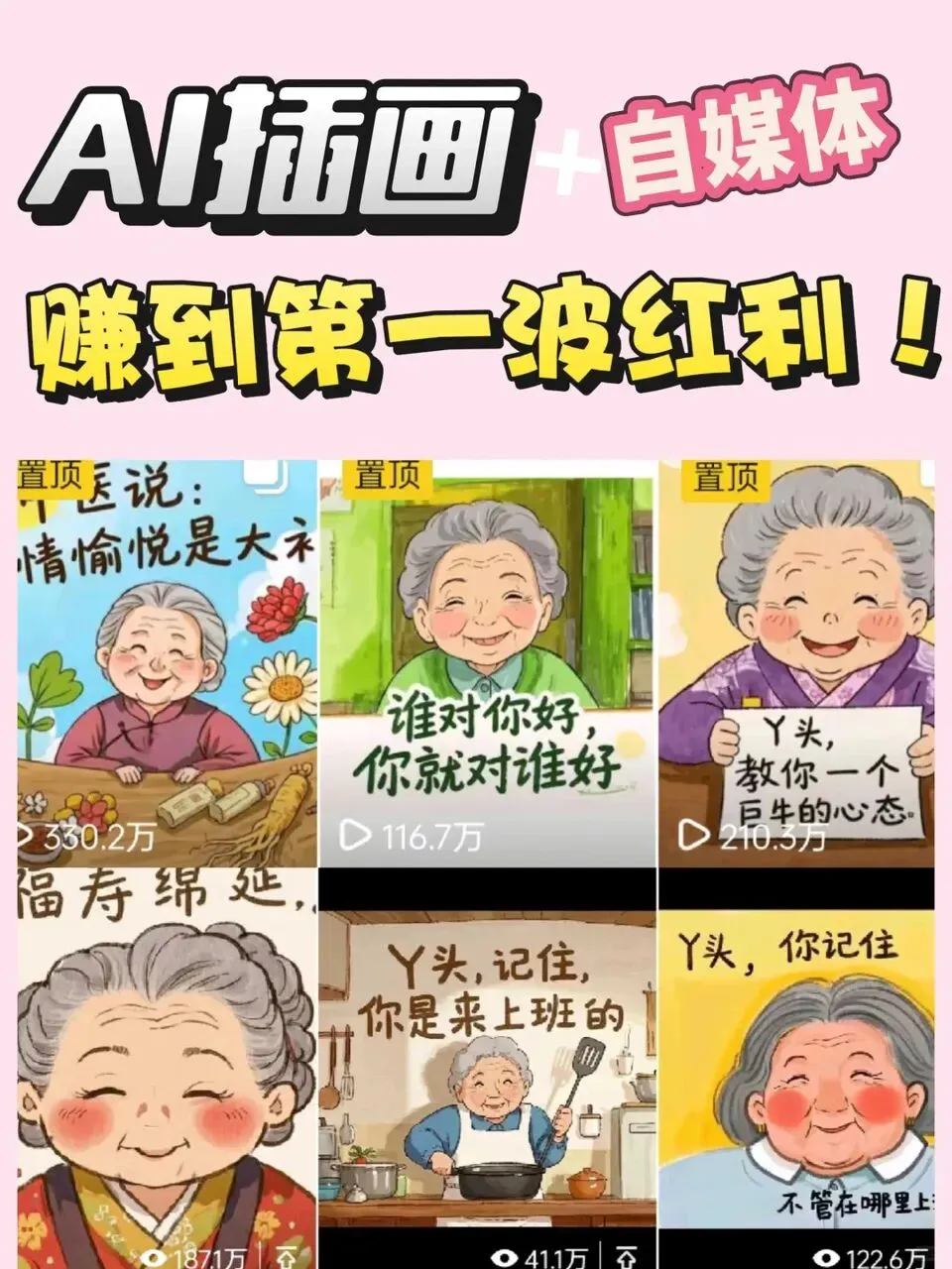 这篇帖子讲的是一位职场妈妈,白天上班,晚上画画和写作。自学插画多年,基本功很扎实。从2024年年底开始从手搓画画转向用AI工具做小红书的【治愈系爷爷奶奶】赛道,一边追剧积累素材一边用手机做图。没想到全网涨粉10万+,总共变现20万(包括付费社群)。