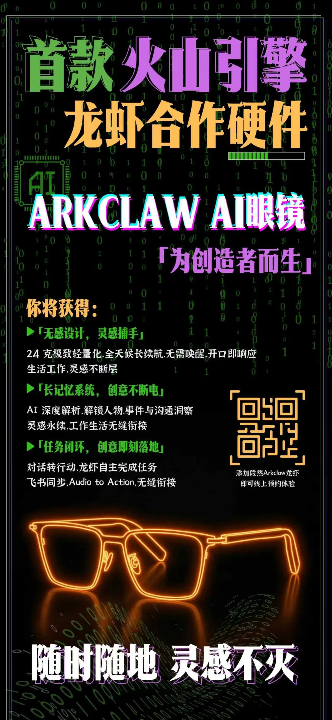 段然还和我们分享了最新的好消息:“我们与字节火山引擎联合研发的首款龙虾合作硬件Arkclaw AI眼镜即将正式发售,这也是当前首款符合国家工信部安全标准的龙虾眼镜。”