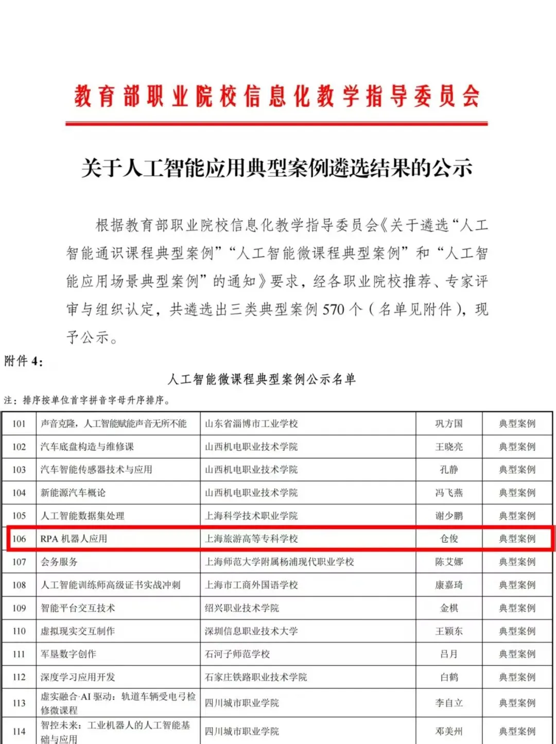 2026年3月,我校《RPA机器人应用》课程成功入选教育部人工智能微课程典型案例!课程聚焦财务数智化转型,围绕票据处理、账务自动化、合同信息提取等真实业务场景,深度融合RPA技术与会计实务,通过创新教学模式着力培养懂行业、懂数据、懂智能的复合型财经人才。