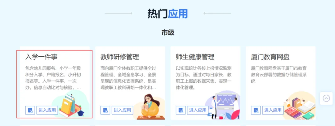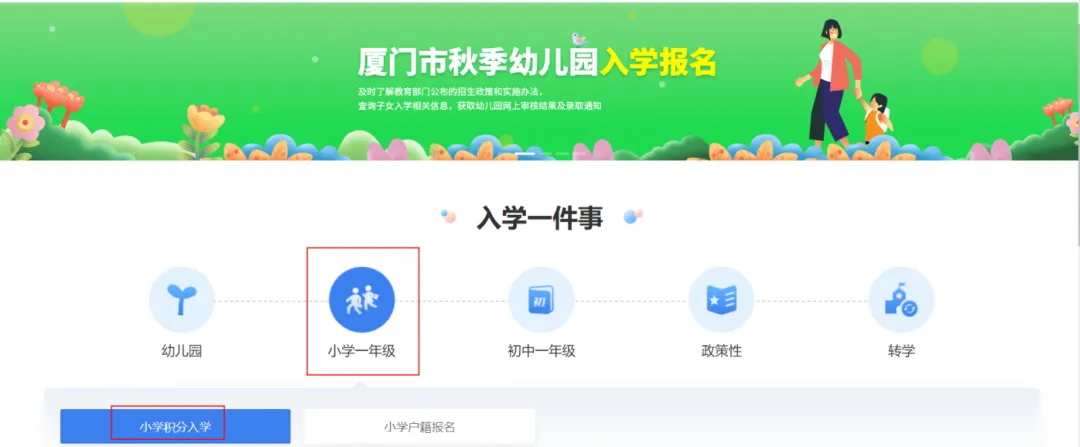 1.3在首页找到“入学一件事”,选择小学一年级下的“小学积分入学”。