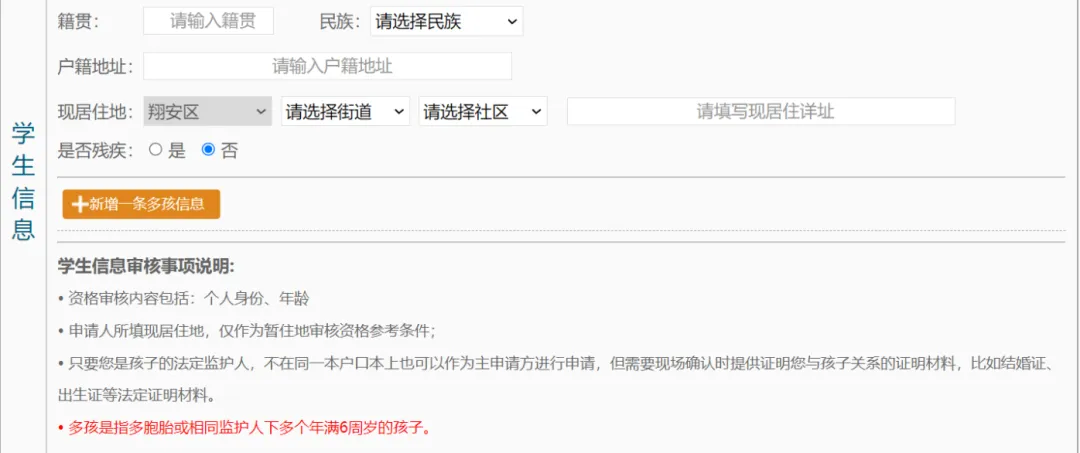 温馨提示:多孩是指多胞胎或相同监护人下多个年满6周岁的孩子。