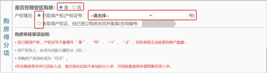 是否在翔安区购房需家长根据自己的实际购房情况点选的。
