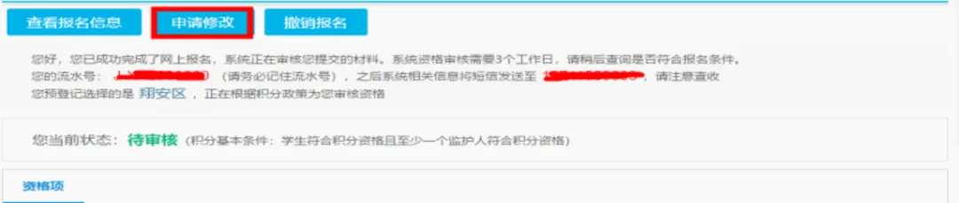 报名提交后,如填写信息有误,点击“申请修改”,待教育局审核通过后,可对提交信息进行修正。