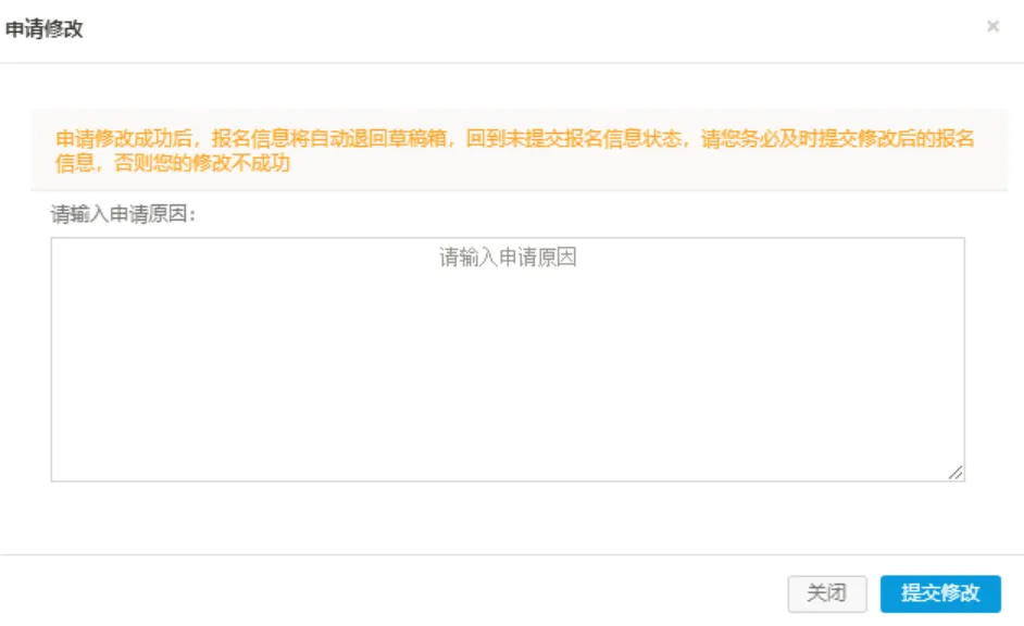 3.申请修改要注明修改原因。