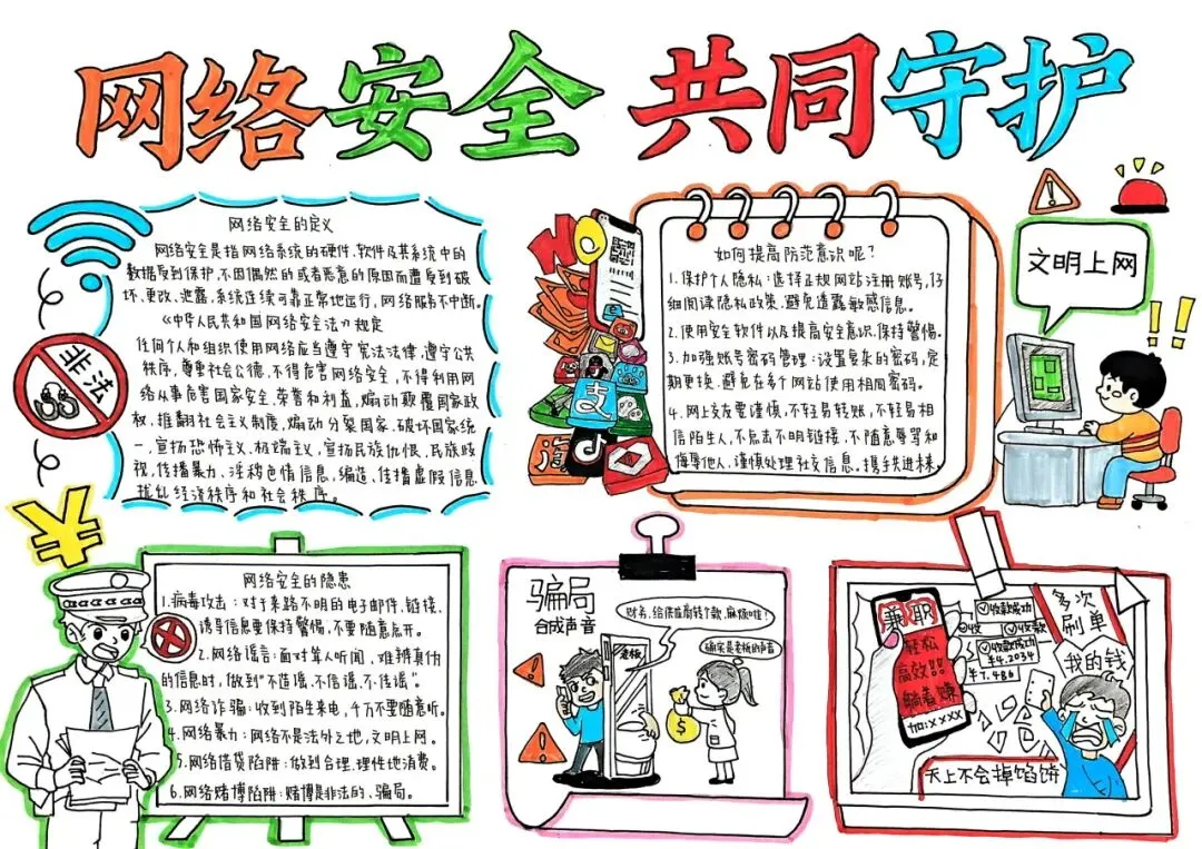 手抄报《网络安全,共同守护》