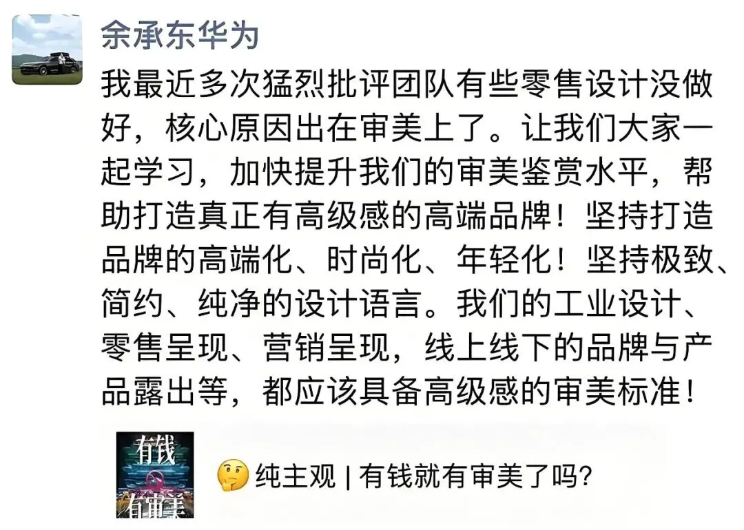 与其等网友吐槽“华为审美崩了”,不如老板自己先站出来说“我也觉得没做好”。