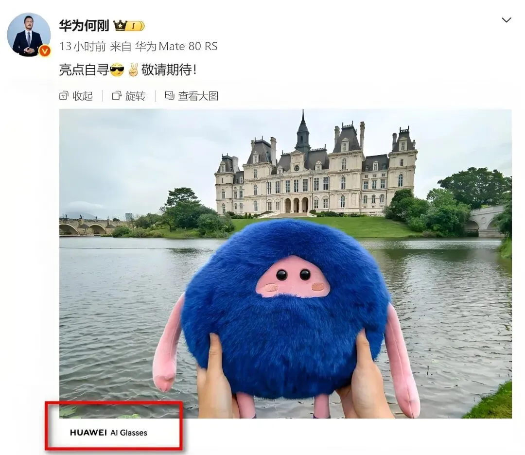 紧接着,何刚发了带“HUAWEI AI Glasses”水印的样张。时间、角度、信息释放节奏,都太“巧”了。