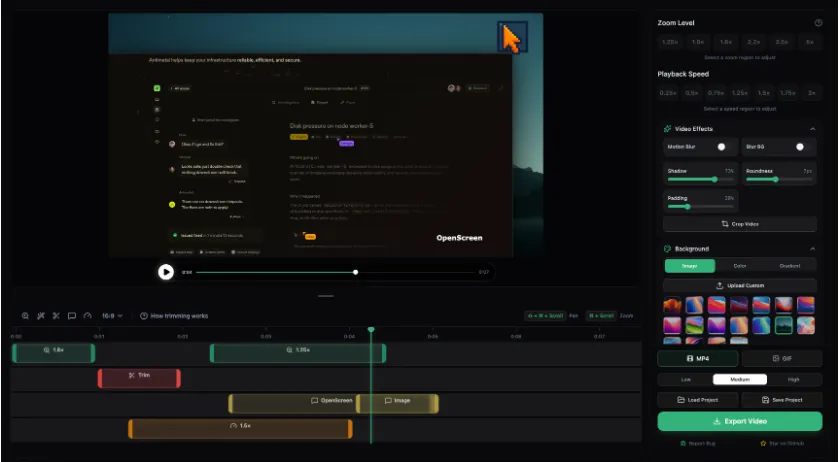 别再花钱买录屏软件了,这个开源工具够你用一辈子如果你的答案是 Camtasia、ScreenFlow、OBS……或者干脆用微信电脑版那个糊得一塌糊涂的录屏功能,那今天这篇文章值得你看5分钟。 因为我发现了一个 免费开源 的工具,做出来的演示视频效果—— 不夸张地说,能直接对标那些卖 $29/月 的付费软件。 GitHub ⭐ 22.6k (本周 +2,749 Star) 全平台支持:macOS / Windows / Linux 项目地址:https://github.com/siddharthvaddem/openscreen 想录个产品演示给客户看,打开付费软件……诶,这个月免费额度用完了 用免费软件录,要么有水印,要么导出慢得像在解压rar 录出来的东西干巴巴的,一点视觉引导都没有,看的人昏昏欲睡 安装完第一件事就是录了个小 Demo,录完回放的时候愣了一下—— 录的时候鼠标点哪里,画面就自动跟着放大到哪里。录完导出,就是一个自带"镜头感"的演示视频。 以前想要这种效果,得花几百块买 Screen Studio。 这年头,连 PDF 工具都开始搞订阅制了,能找到一个干干净净免费用的开源工具,属实难得。 Windows 版目前还在 Beta,导出速度偶尔会抽风。但核心功能都正常,不影响正常使用。 https://github.com/siddharthvaddem/openscreen/releases 一个免费工具,能做到 80% 的付费体验,还要什么自行车? 现在有了 OpenScreen,至少这件事不用再花冤枉钱。 https://github.com/siddharthvaddem/openscreen