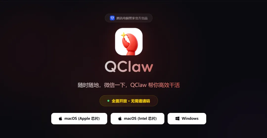 首先,来看腾讯的QClaw。目前QClaw的部署形态,只支持Windows和Mac双平台,下载安装包之后直接安装就能用,不需要浏览器,也不需要什么复杂配置。这种部署方式的好处是什么呢?稳定、安全、不依赖网络。你的对话数据都在本地,不会上传到云端,隐私性比较好。