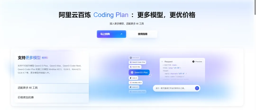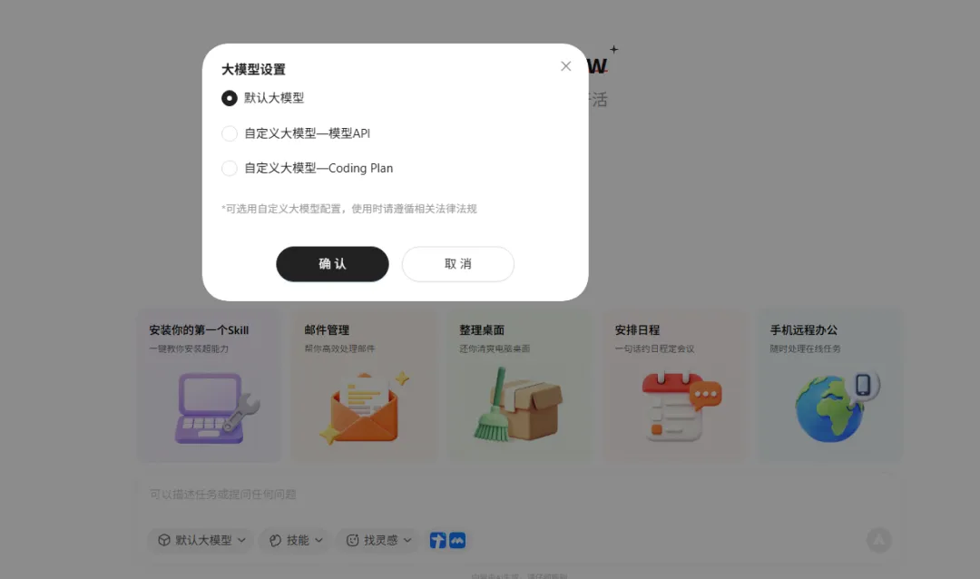 模型方面,JVS Claw内置通义千问系列模型,包括Qwen3.5 Plus、Qwen3 Max。API接入仅支持阿里云千问官方API与阿里云百炼API,Coding Plan也只能接入阿里云百炼Coding Plan,不支持自定义模型。
