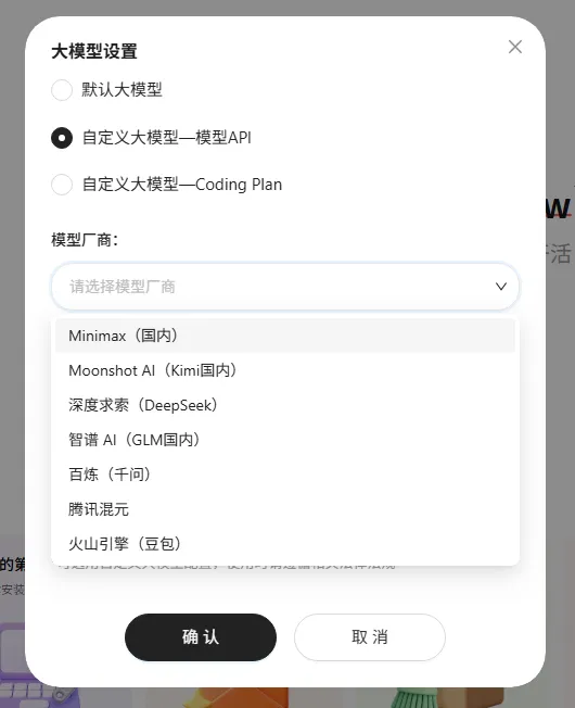 QClaw的模型API目前只支持Minimax、Kimi、DeepSeek、智谱GLM、千问百炼、混元以及火山引擎的豆包这7家国内大模型,国外的用不了。Coding Plan也是这7家的套餐。像其他龙虾有的自定义大模型这个功能,QClaw做不到,你只能用官方给的。