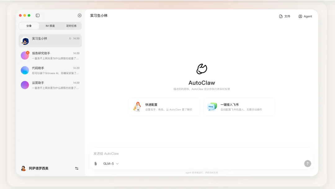 接下来看看第二只龙虾,AutoClaw,也就是我们说的“澳龙”,它是智谱团队开发的,同样支持本地客户端部署,Windows和Mac都能用。
