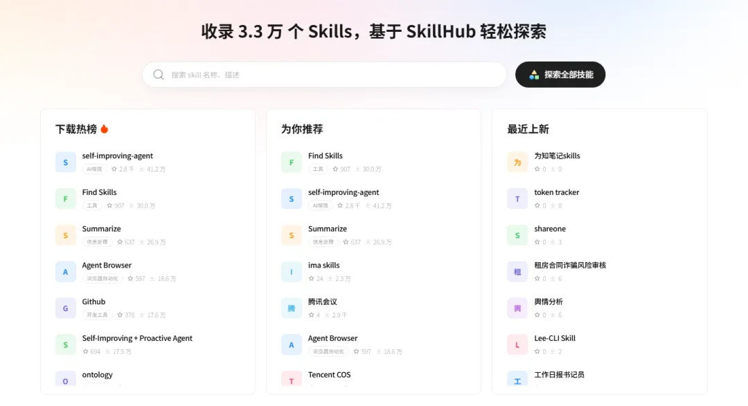 原版OpenClaw能一夜爆火,核心不是它的内核有多厉害,而是它背后的ClawHub全球技能生态。但对于咱们国内用户来说,原版ClawHub有三个大问题:第一,服务器在海外,下载速度慢到离谱,甚至经常打不开,一个几KB的技能,要下十几分钟。