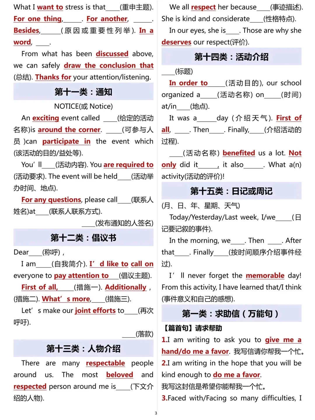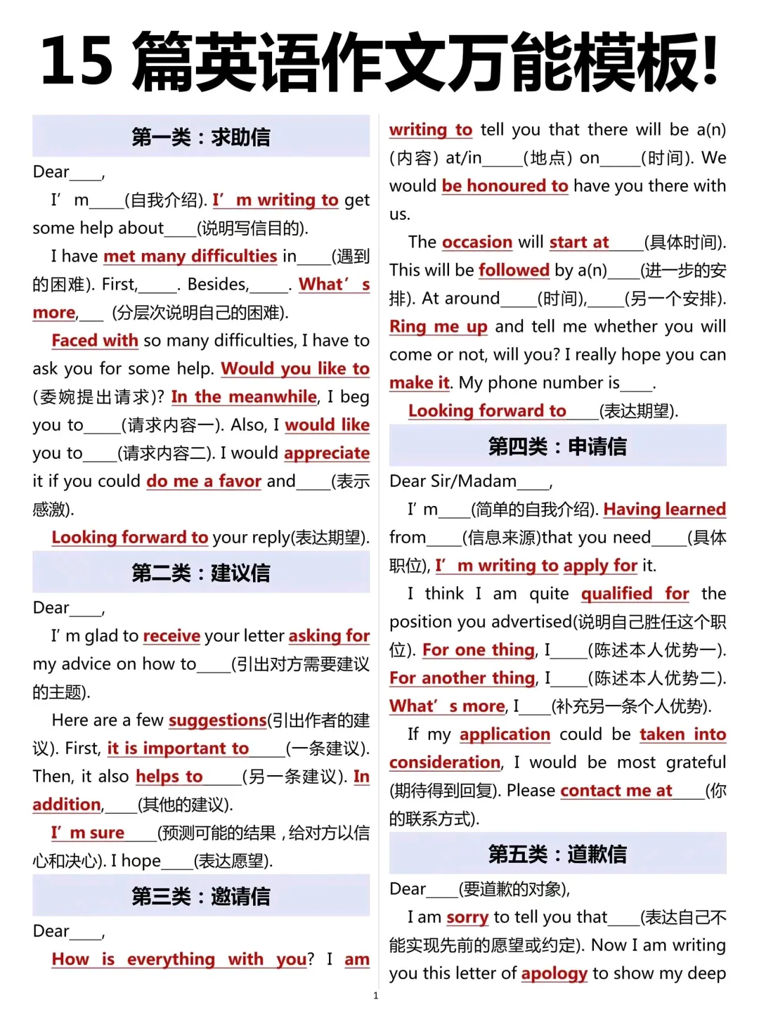 高中英语15篇万能作文模板,覆盖高考最常考的类型,直接背就能用,句式高级、结构清晰,考场直接套用。