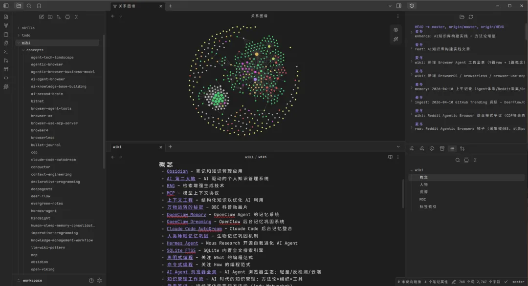 Graph View:查看 wiki 的形状——哪些页面互联了、谁是中心页面、谁是孤立页面。