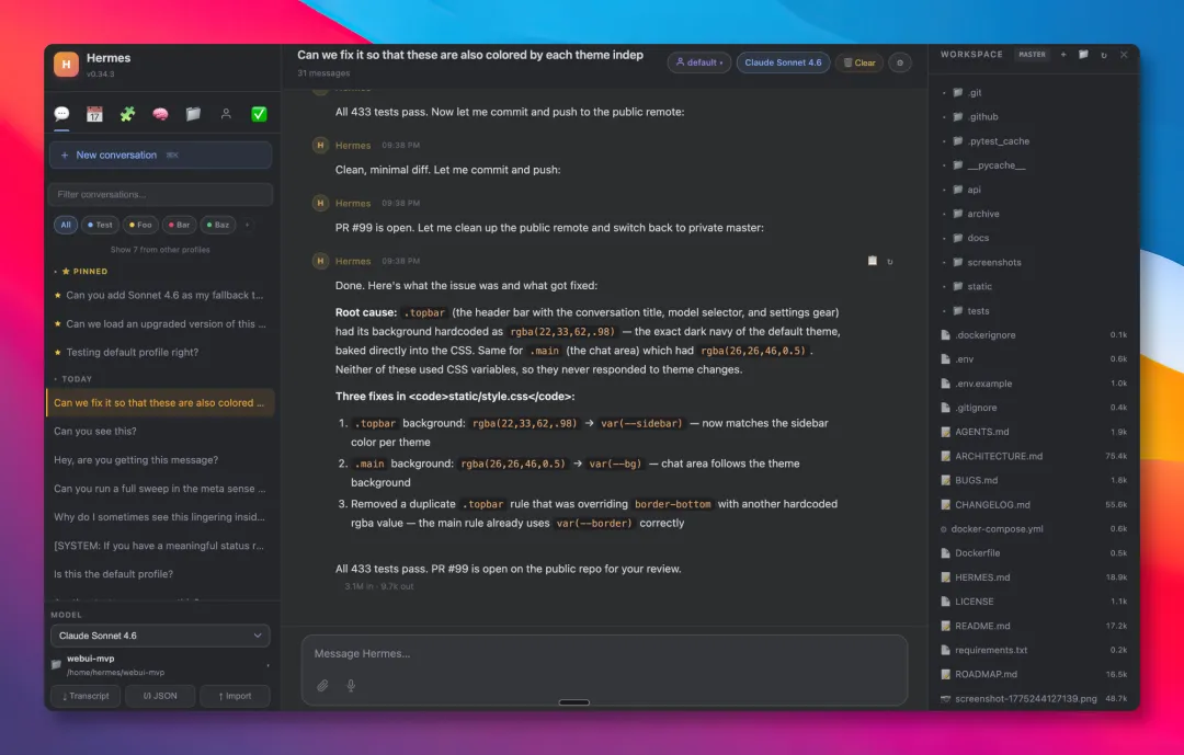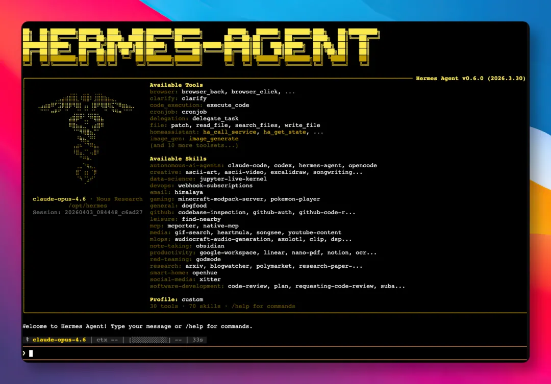 Hermes 是它自己写、自己用、自己改,用的时间越长,积累越厚。