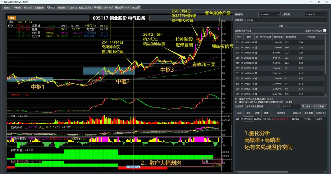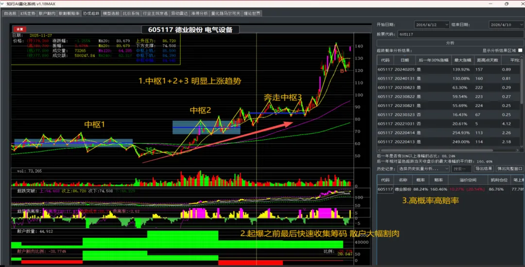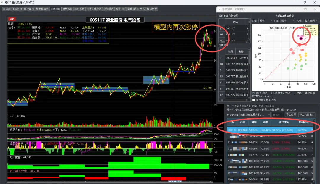 知行AI的活跃资金指标显示,德业股份在启动前,活跃资金已大幅翻红。资金背驰信号——资金创新高,股价没创新高,这就是启动的前兆。
