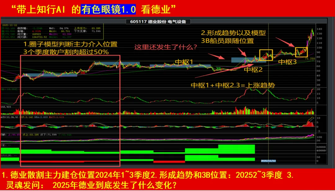 在知行AI的技术结构图谱上,德业股份先后出现两次3买: