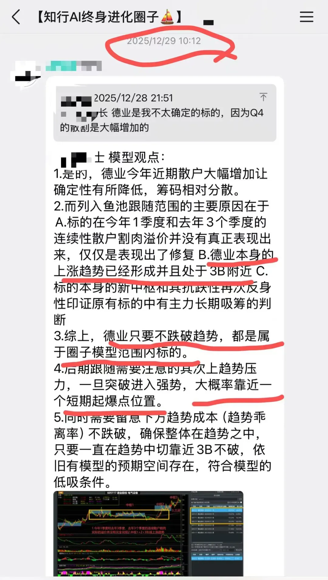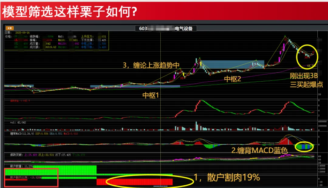 圈子当时给出明确的判断是:散户增加,是主力为后续拉升出货做的前置条件。德业处于上涨趋势并且靠近3B三买附近,只要趋势未坏,都是属于圈子模型内。