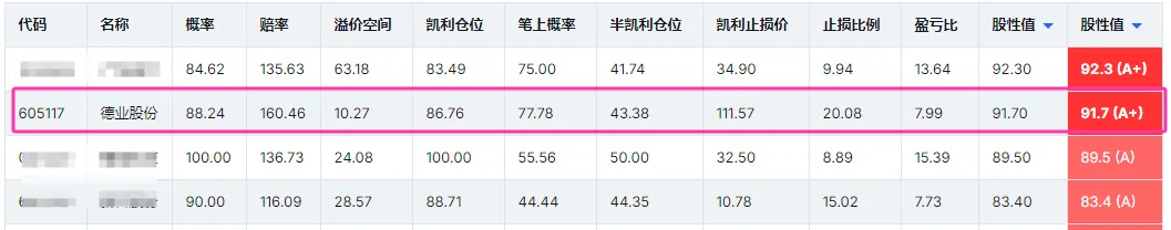 年前“红包行情精选”,5000多只个股里只选出23个。德业股份位列其中,股性值排名前三。