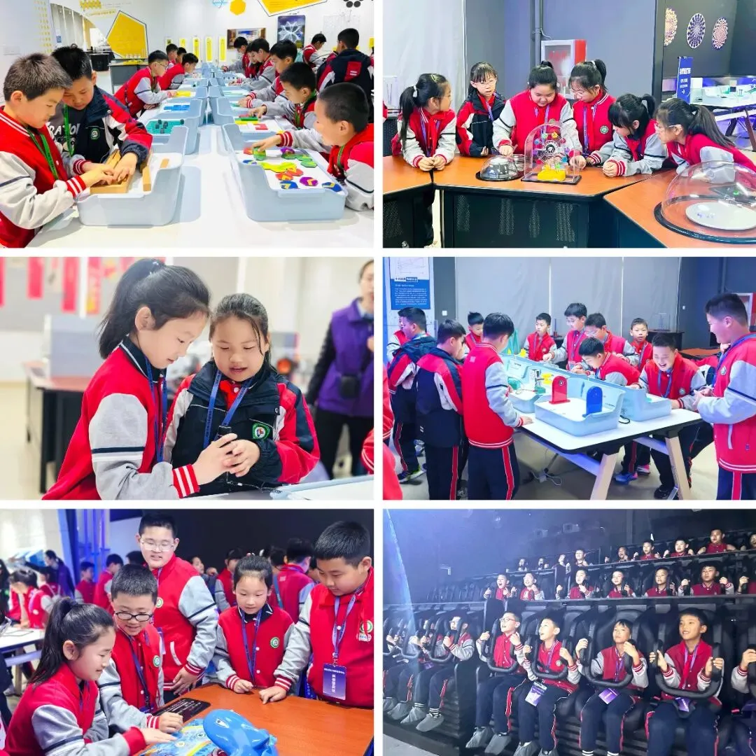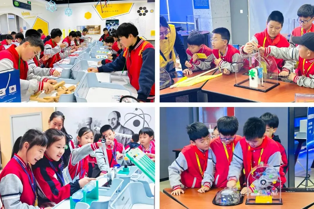 在精彩纷呈的科学实践活动中,同学们穿梭于数学万象馆、物理探索馆、声光幻影实验室与创意手工坊,解锁了一场充满奇思妙想的科学之旅。在数理启智与物理探秘环节,大家玩转平分果汁、华容道等趣味项目,亲手操作“自己拉自己”、锥体上滚等实验装置,在游戏与探索中锻炼逻辑思维、点燃科学热情。