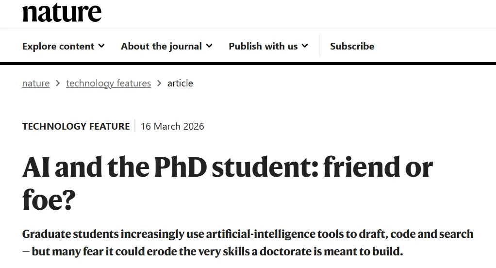 博士生们正走在一条他们的导师们从未涉足的道路上。有人每日与AI为伴,视其为得力助手;有人则唯恐避之不及,担心它会毁掉自己作为研究者的成长之路。大多数人则身处中间地带,在摸索中建立自己的规则:何时借力AI,何时亲力亲为?