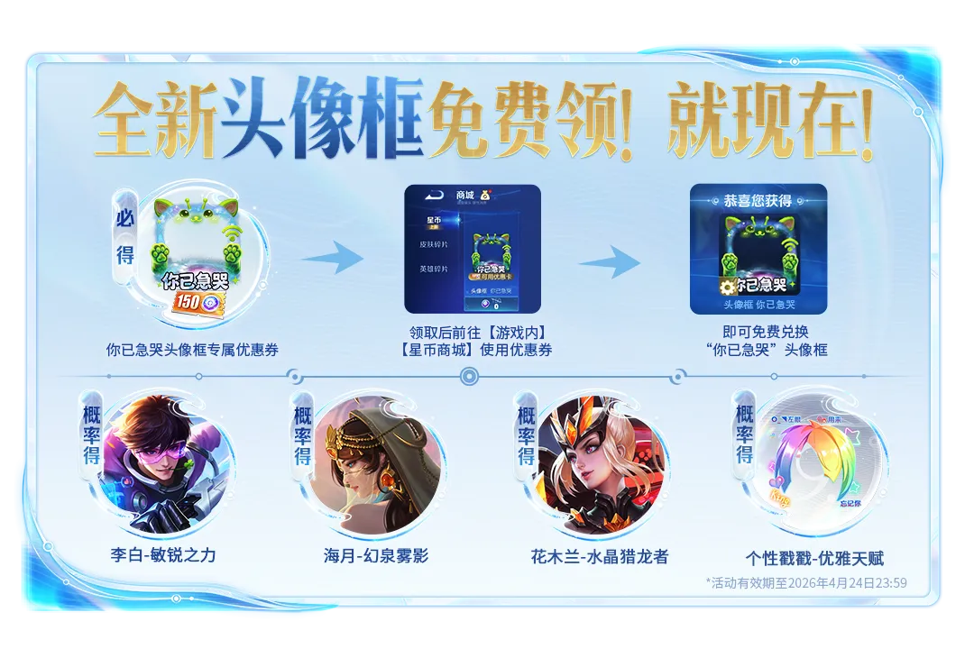 急急急!再不领!礼要急哭!【你已急哭】头像框正在免费派送中!领取后前往游戏内星币商城,即可使用优惠券以0星币免费兑换!