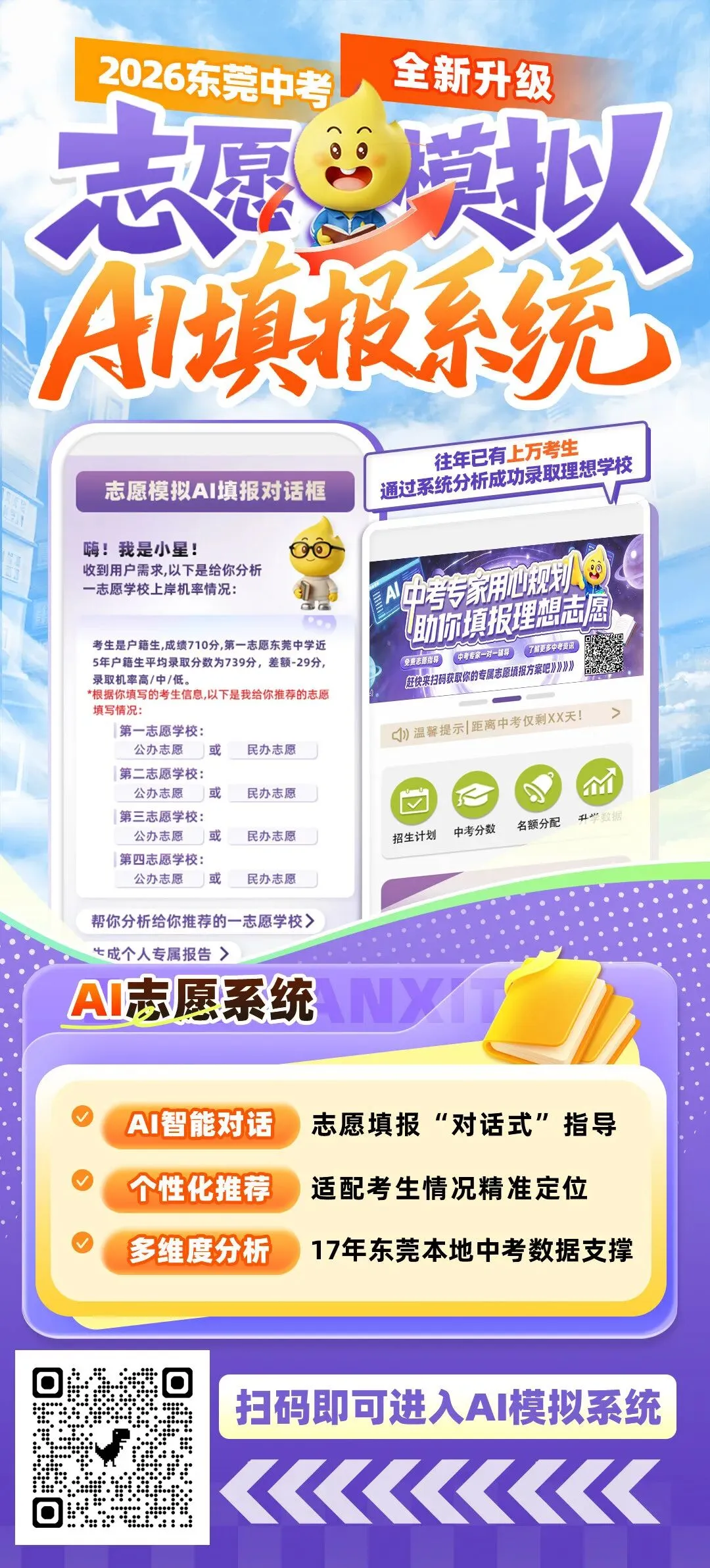 👇 扫描下方二维码进入【东莞中考志愿模拟AI填报系统】