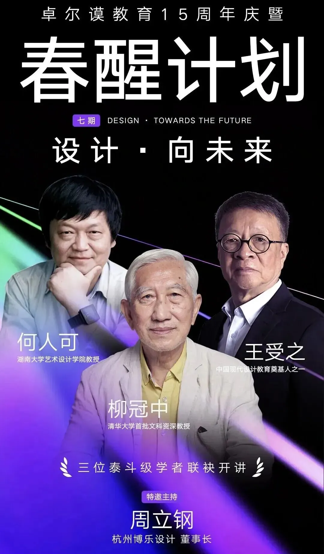 2026年4月7日至9日,连续三晚,三位中国工业设计界泰斗级人物在卓尔谟春醒计划直播间开讲。清华大学柳冠中、上海科技大学王受之、湖南大学何人可三位加起来超过两百二十岁的老先生,在AI浪潮汹涌而至的当下,围绕"设计是什么、设计师往哪里去、中国设计如何走出自己的路",奉献了三场充满智慧与忧虑的分享。作为这场直播的主持人——博乐周立钢,我坐在屏幕前三晚听完三位老师的分享,深感这个时代的设计从业者,正在面临一个前所未有的十字路口:AI在颠覆设计工具,中国设计在谋求走出自己的特色之路,而设计教育还在原地打转。这篇文章,我把这三天最核心的内容整理给你。不只是三位教授的观点,也包括我们圆桌环节设计师最关心的那些问题——设计教育怎么改、AI会不会取代设计师、OPC(一人公司)到底靠不靠谱、设计该怎么定价。