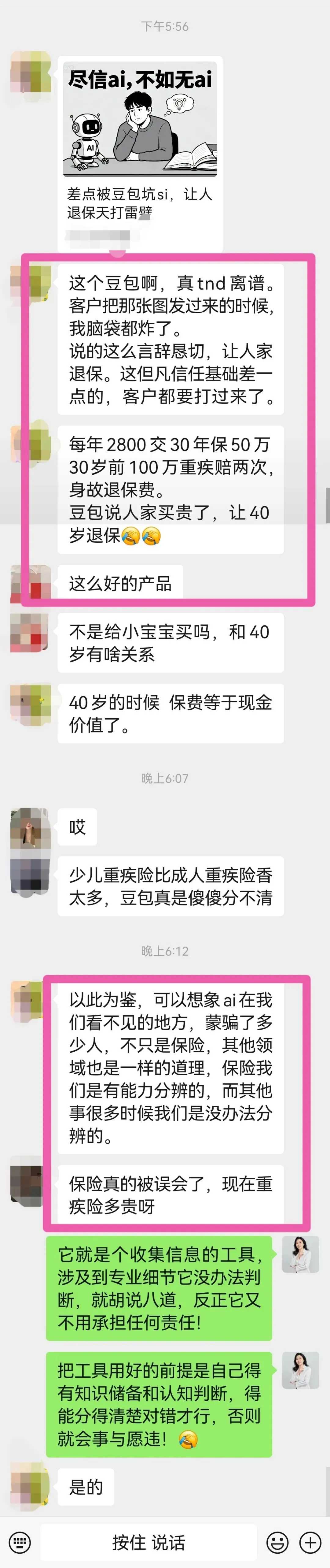 刚理赔群里陕分的伙伴遇到客户被ai差点儿带沟里的遭遇!为此她专门写了篇公众号文章,希望更多人能引以为戒