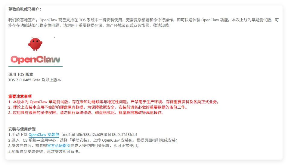 从官网渠道下载 openclaw https://download3.terra-master.com/Apps/forum/TOS7/OpenClaw_TOS_APP_0.0.101_x86_64.deb